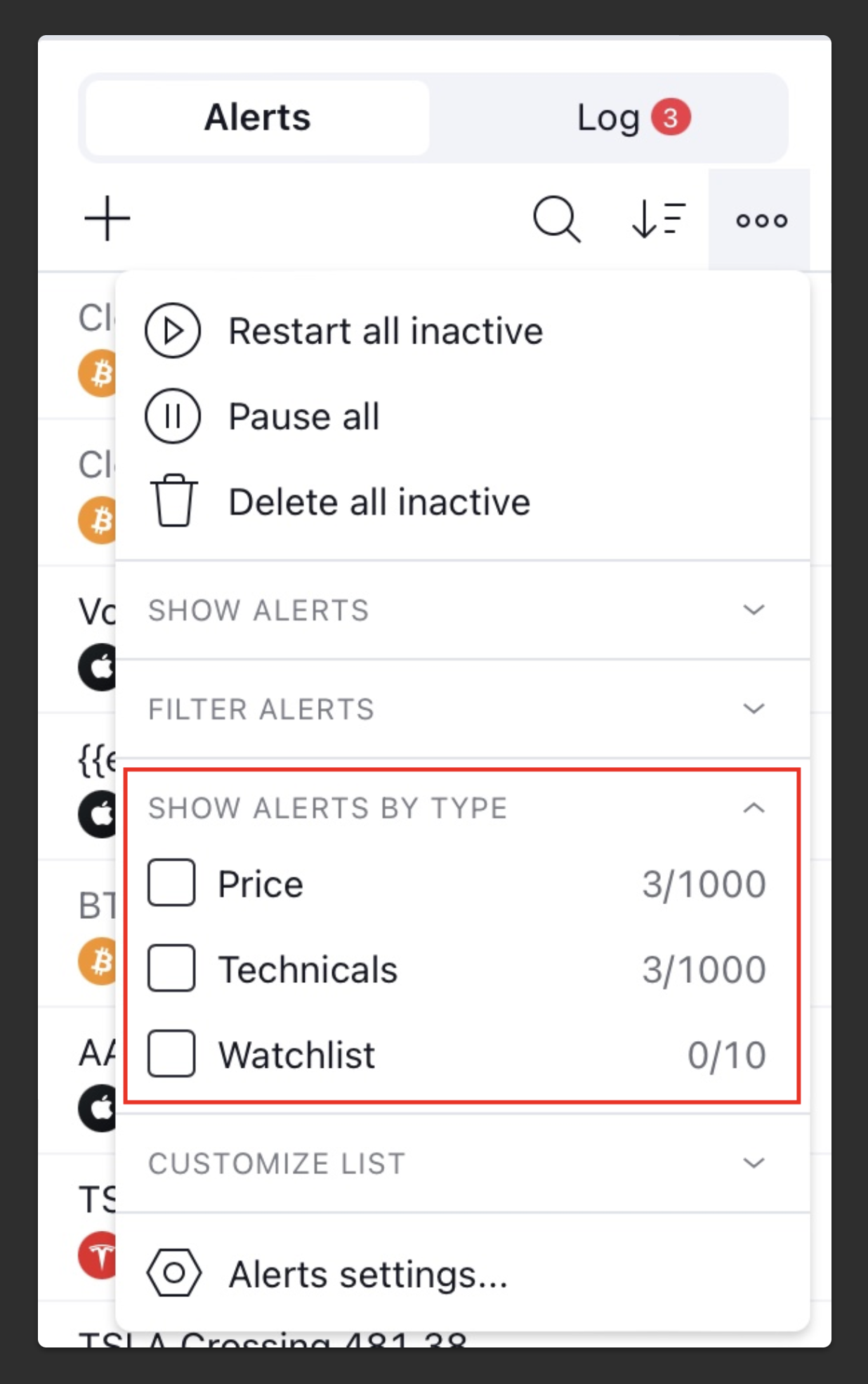 Label alerts with clear names (“BTC breakout,” “ES pullback”)